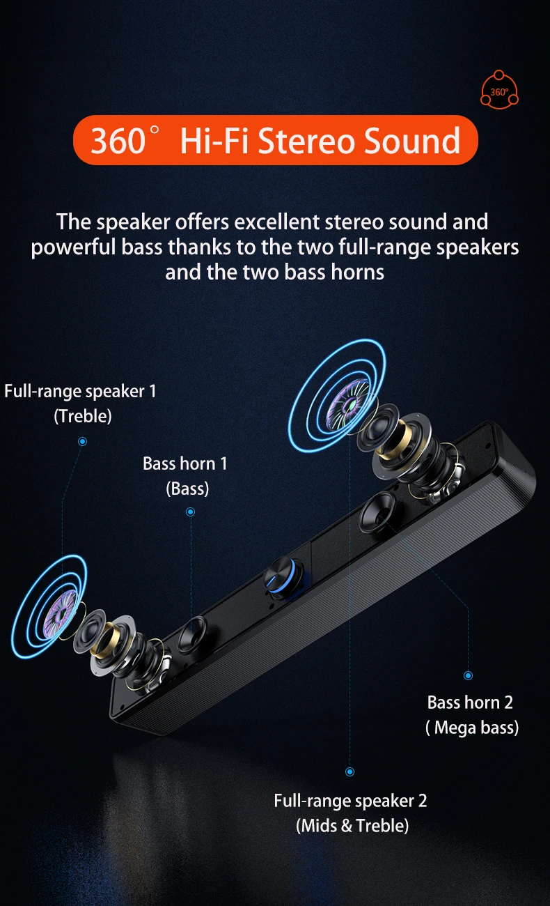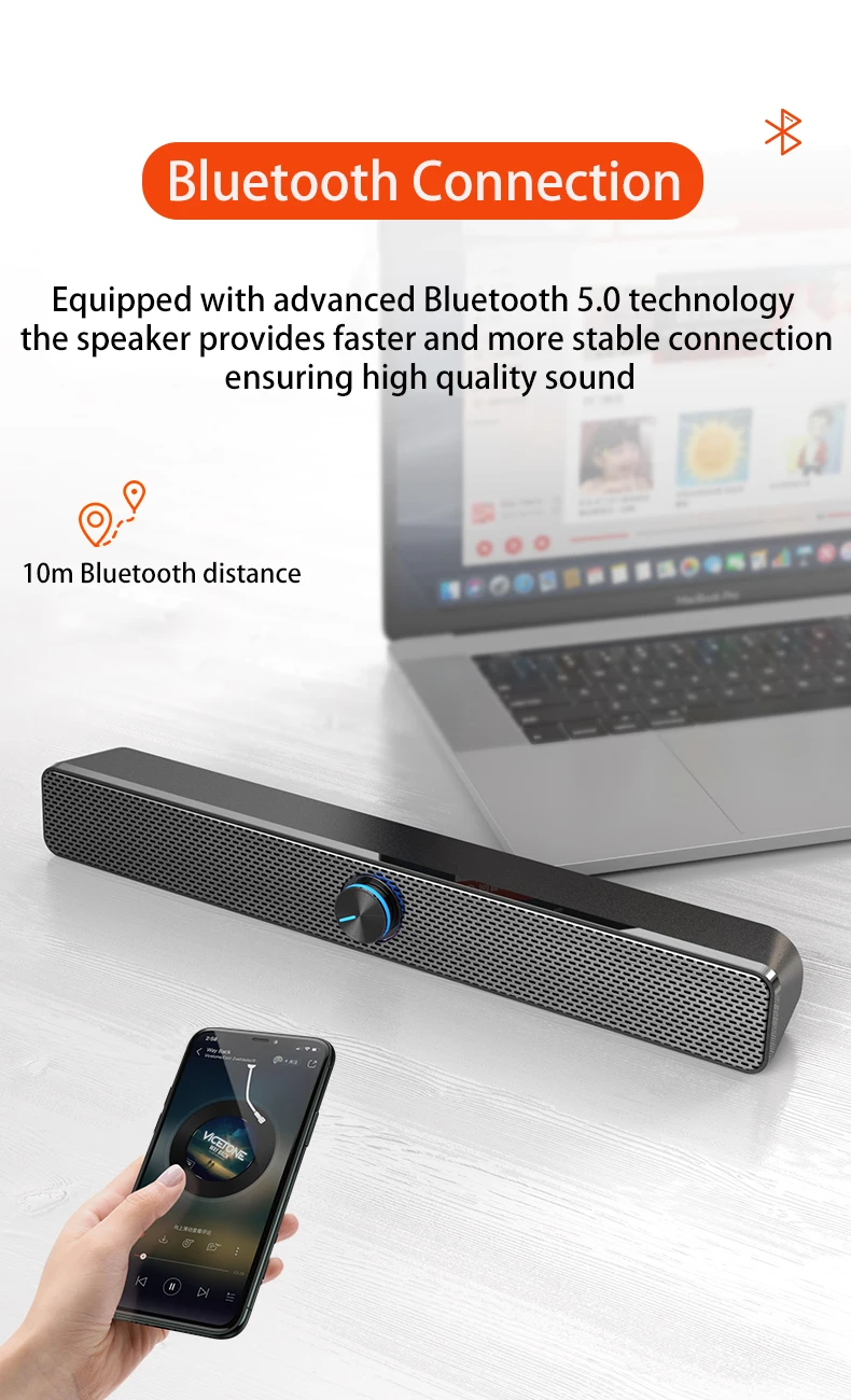 С встроенным сабвуфером обеспечивает мощные басы, домашний-аудиосистемы, отлично подходит для небольших сред, подходит для работы с Bluetooth TV в том числе Samsung, визио, TCL, LG, Sharp, Philips, Sony, xiaomi и многое другое телевизоров и телефонов.