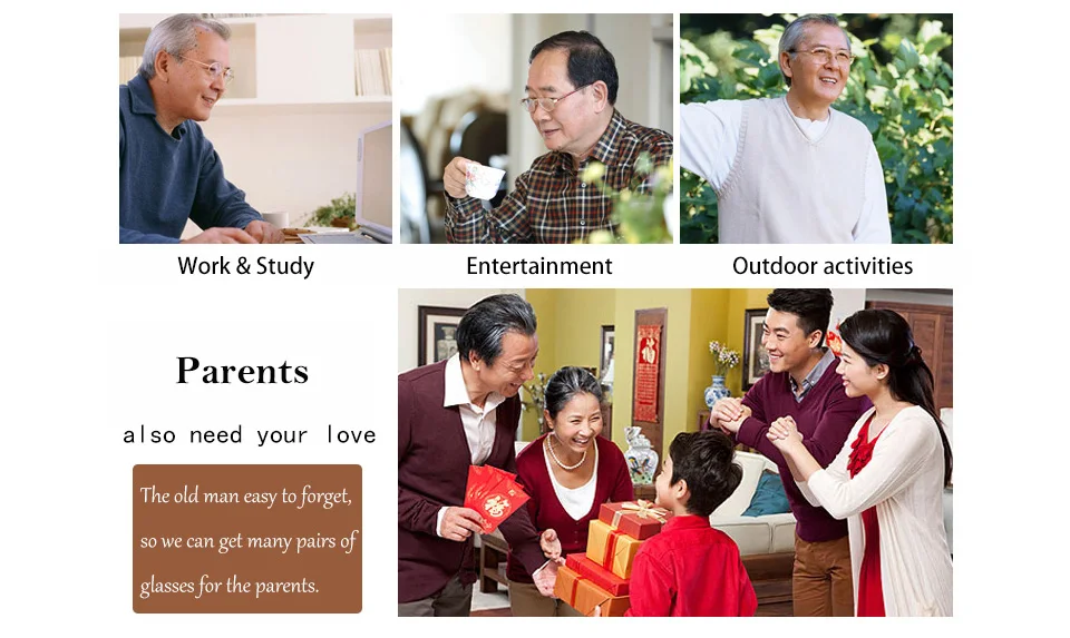 1. Stainless steel +TR 2. Anti-blue light 3. Bright lenses 4. Big frame 5. Slingshot design 6. Recommended by the manager
