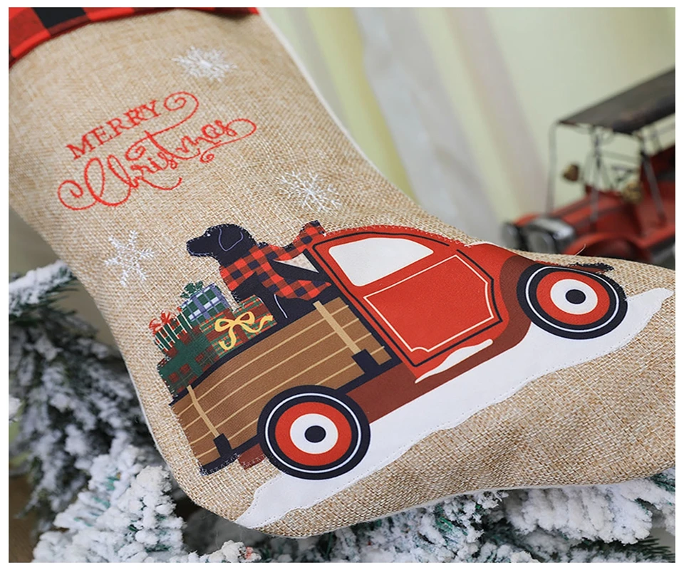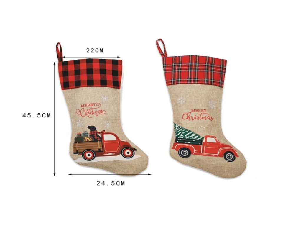 2 шт./пакет/автомобиль с изображениями на тему Рождества; Носки из красного и черного цветов Льняные носки/пакет для конфет/Елочное украшение подвесные украшения