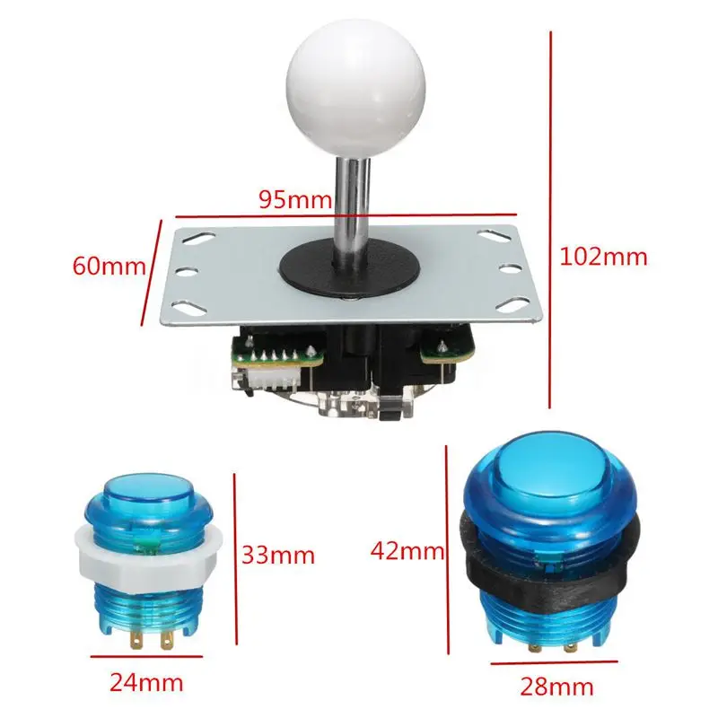 Светодиодный аркадный комплект 2x с нулевой задержкой USB энкодер + 2x джойстик + 20x Кнопка с подсветкой