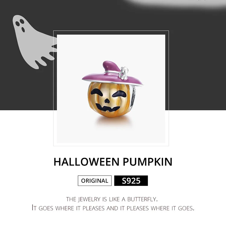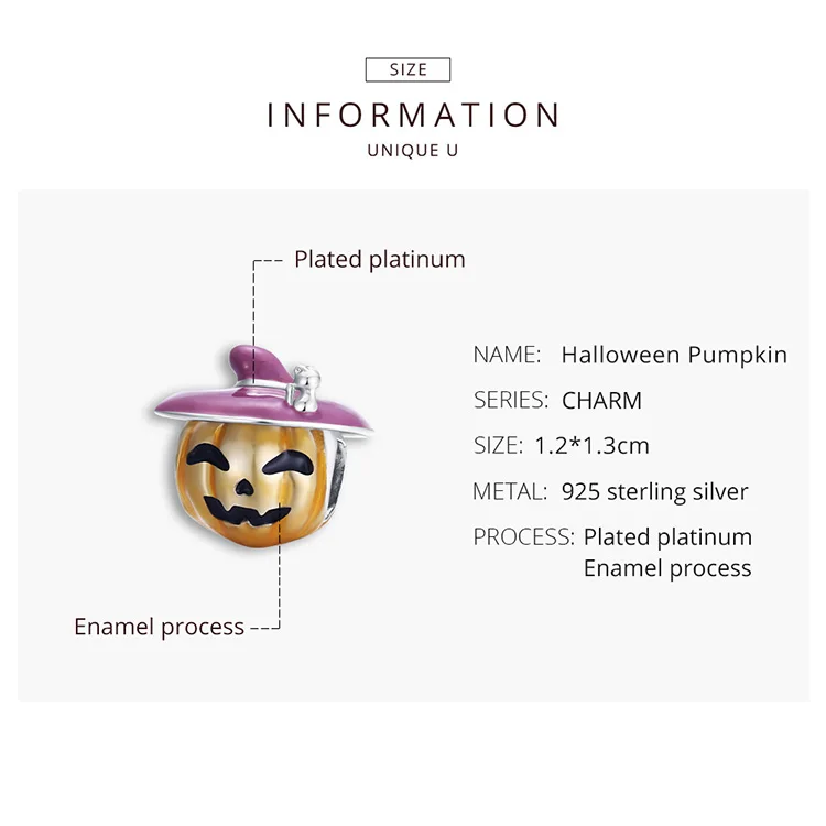 Трюк или лечение! Игривая форма тыквы создает счастливую атмосферу Хэллоуина. S925 + покрытая платина + эмаль Размер: 1,2*1,3 см