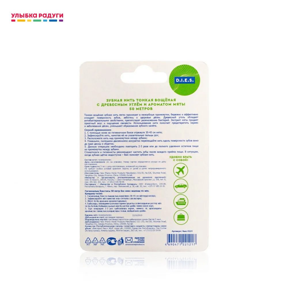 Тонкая вощеная зубная нить с содержанием угля;деликатно очищает межзубные промежутки в участках недоступных для зубной щетки. Освежает дыхание благодаря аромату мяты.