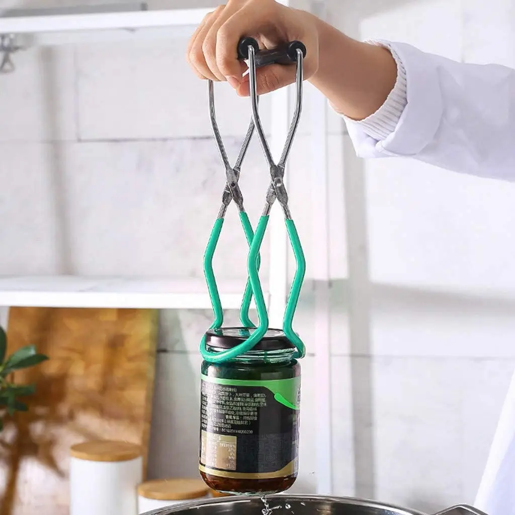 Canning Jar Lifter with Rubber Grips, Long Handle Canning Tongs Stainless Steel Lifter Cans Gripper Clamp Canned Clip for Kitchen Restaurant Wide-Mouth and Regular Jars Safe and Secure Grip