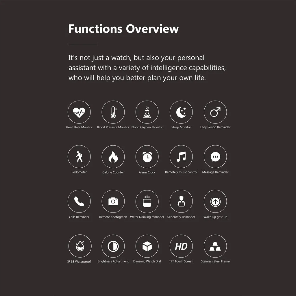 Health Reminders: Heart rate, Sleep monitor,Blood pressure, Blood oxygen,Steps, Lady period reminder