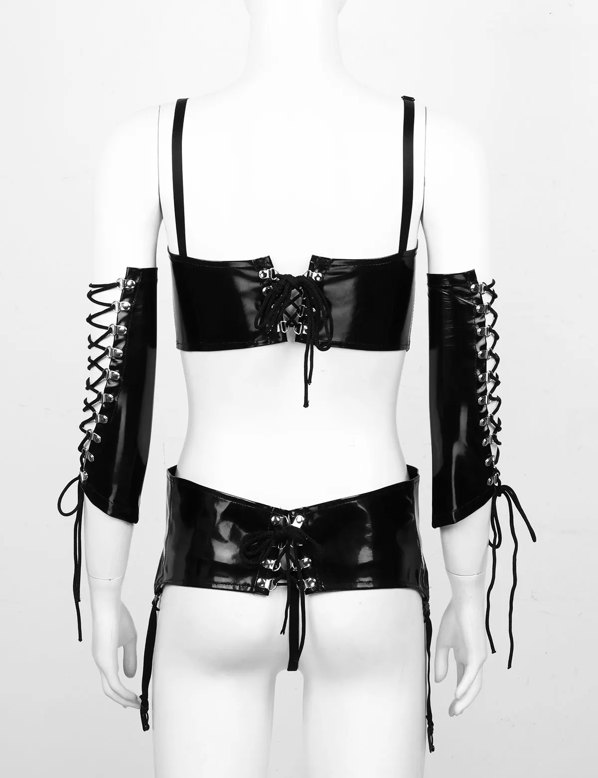 Также сочетаются Трусы-стринги и пара рукавов. Дизайн со шнуровкой и d-образными кольцами, который поможет создать комплект нижнего белья в обтяжку, можно регулировать по размеру.
