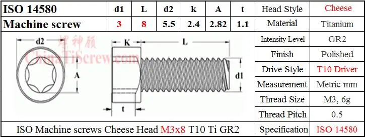Титановые винты ISO 14580 M3x8 T10 драйвер Ti GR2 без магнита