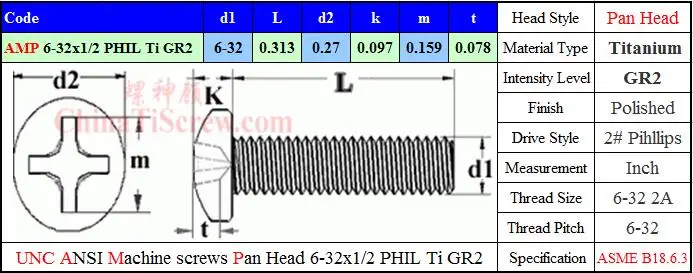 У нас есть титановые винты 6-32x1/4 6-32x5/16 6-32x3/8 6-32x1/2 6-32x5/8 6-32x3/4 6-32x1 в наличии, головка сковороды, 2 # Phillips драйвер, Ti GR2, полированный.