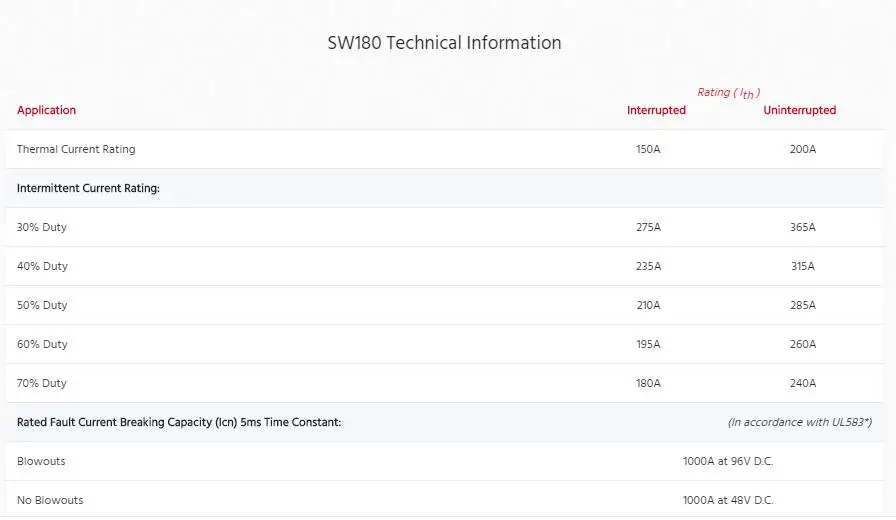 Серия контакторов SW180 была разработана для прямых текущих нагрузок, особенно двигателей, используемых на электромобилях, таких как промышленные грузовики, тракторы аэропорта, такие как вилочный погрузчик Elec и т. Д.
