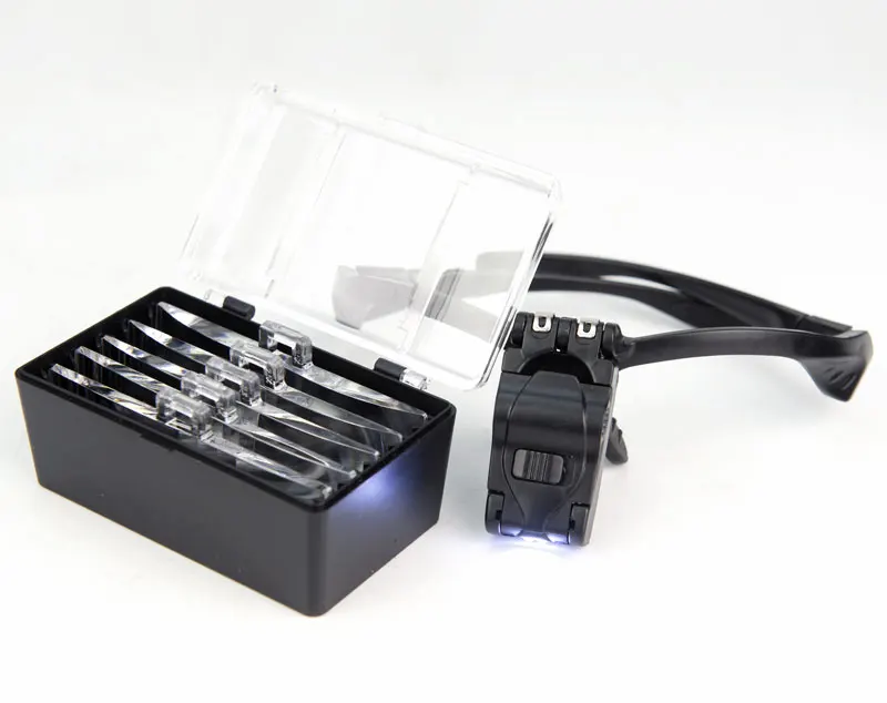 Портативное увеличительное стекло с двумя светодиодными лампами, кронштейн и оголовье взаимозаменяемы