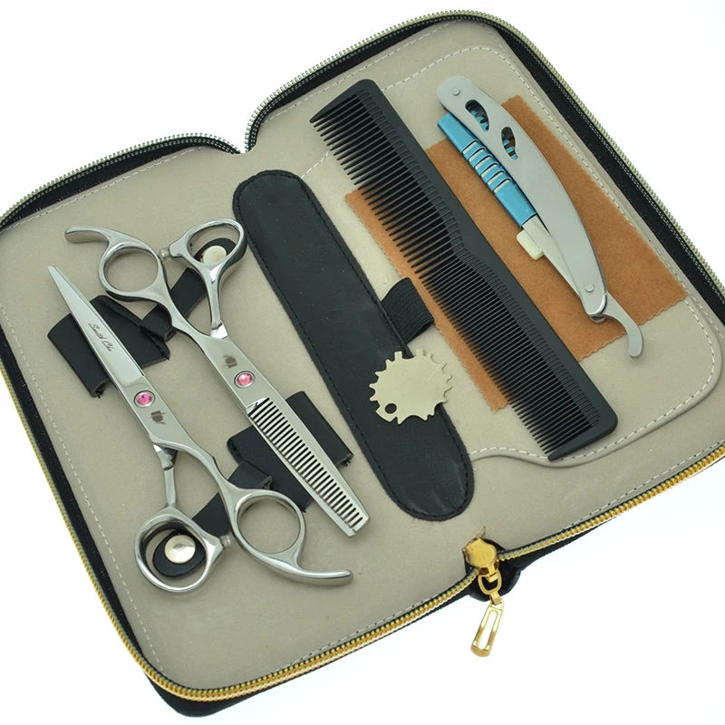 Описание продукта: Материал ручки:Из нержавеющей стали Материал лезвия: Япония 440c сталь Длина: ножницы для резки: 5,0 "(прибл.: 15 см) 5,5" (прибл.: 16,2 см) 6,0 "(прибл.: 17,2 см) 6,5 "(прибл.: 18,2 см) 7,0" (прибл.: 19,5 см) Филировочные ножницы: 5,5 "(прибл.: 16,2 см зубья: 28) 6,0" (прибл.: 17,2 см зубья: 30) 6,5 "(прибл.: 18,2 см зубы: 34) 7,0" (прибл.: 19 см зубы: 38) Уровень защиты: 62HRC Цвет:Серебристый, голубойНабор ножниц для волос с сумкой комплектация: