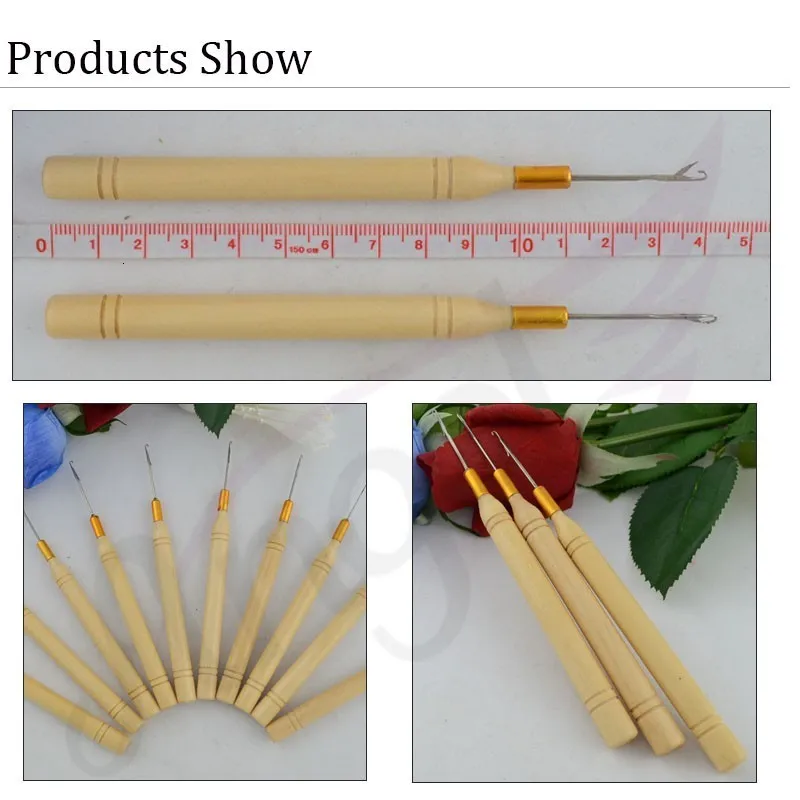 Деревянная ручка крюк иглы/микро кольца/петли иглы для наращивания волос, инструменты для наращивания волос
