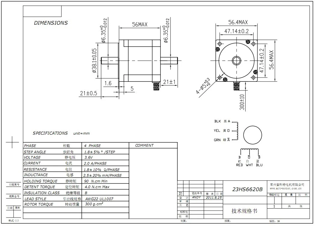 6, nema 23 шаговый двигатель 1.26n.m(178oz-in) 56 мм/2A