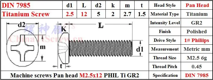 У нас есть DIN 7985 титановые винты M2.5x4 M2.5x5 M2.5x6 M2.5x8 M2.5x10 M2.5x16 M2.5x18 M2.5x20 в наличии, головка PHIL драйвер, Ti GR2.No Магнитный