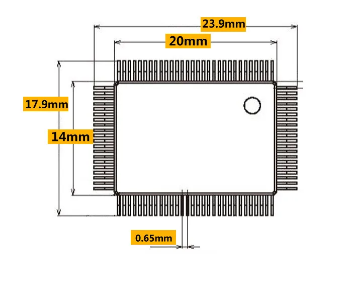 Спецификация: QFP100/TQFP100/LQFP100 Расстояние между штырьками: 0,65 мм Чип Ширина: 14X20mm 17.9X23.9mm