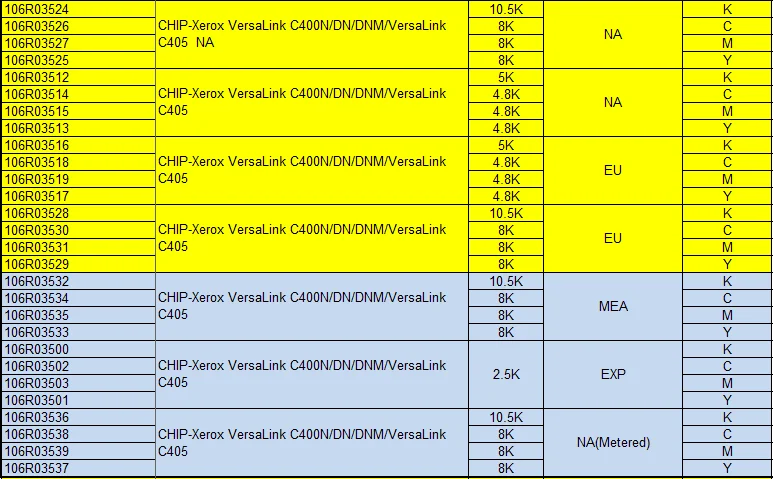 106R03524 106R03526 106R03527 106R03525 106R03512 106R03514 106R03515 106R03513 106R03516 106R03518 106R03519 106R03517 106R03528 106R03530 106R03531 106R03529 106R03532 106R03534 106R03535 106R03533 106R03500 106R03502 106R03503 106R03501 106R03536 106R03538 106R03539 106R03537 Примечание: Этот чип имеет различные номера картриджей, пожалуйста, внимательно проверьте и выберите правильный.