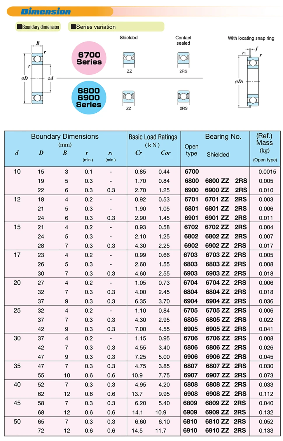 Шарикоподшипники тонкой секции были разработаны для применения, где ограничения пространства имеют огромное значение. Как следует из названия, разница между внутренним и внешним диаметрами колец была уменьшена или утончена. Конечно, это цена за счет снижения нагрузки. Тем не менее, эти подшипники могут по-прежнему вмещать относительно легкую радиальную тягу или комбинированные нагрузки. Серия 6800-Метрическая размерная серия для ограниченного применения в космосе и легких нагрузках