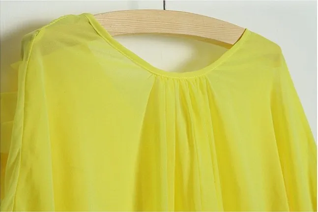2016 новый летний женский стиль в европейском стиле сладкие шифоновые лепестки летучая мышь рубашки женские блузки рубашки женские платья Прямая доставка