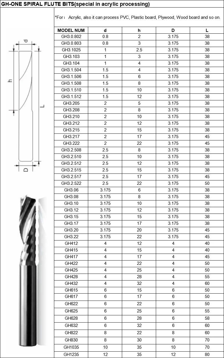 Одна Флейта Спиральные Биты, CNC фрезерные инструменты, CNC режущие биты, концевые фрезы на гравировальный резной станок