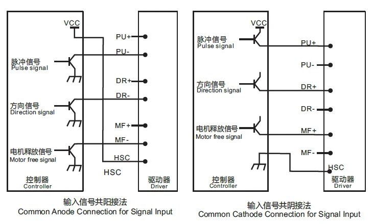ПУ- | SW9 = Выкл, PU-импульсный сигнал | Воздействие на падающие края, двигатель идет на один шаг, так как импульсный вход меняется от «высокого» до «низкого». Входное сопротивление составляет 220ом. Требования: защита от низкого напряжения: 0-0,5 V, высокое напряжение: 4-5V, длительность импульса:> 2.5μs |