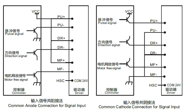 ПУ + | Шаг импульсный сигнал + | Он может подключаться + 5 В-+ 28 в, когда он более + 5 В, пожалуйста, Подключите Терминал COM24V. |