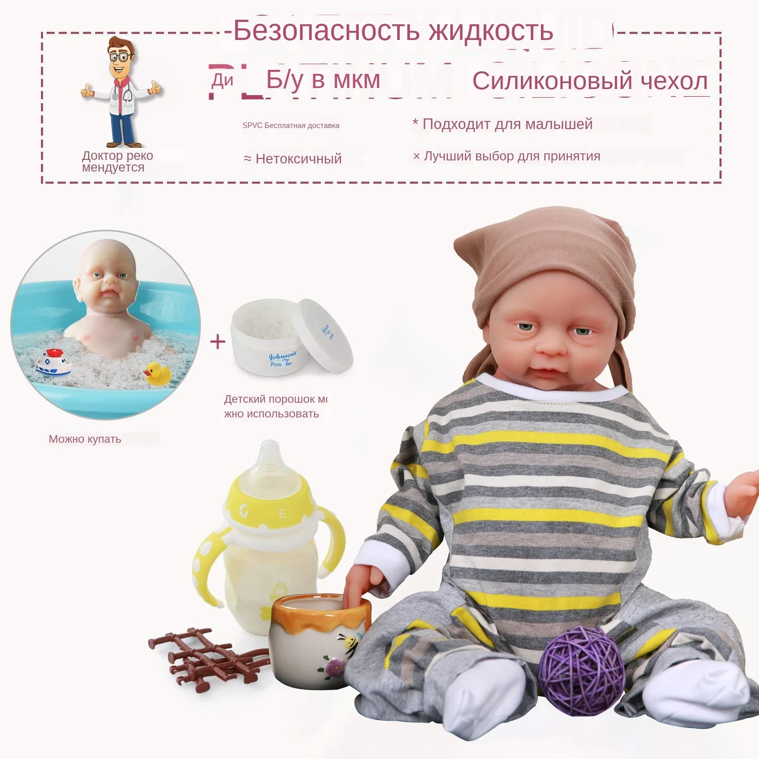 Наш Новорожденный ребенок изготовлен из медицинского платинового жидкого силикона, медицинский силиконовый материал не токсичен,