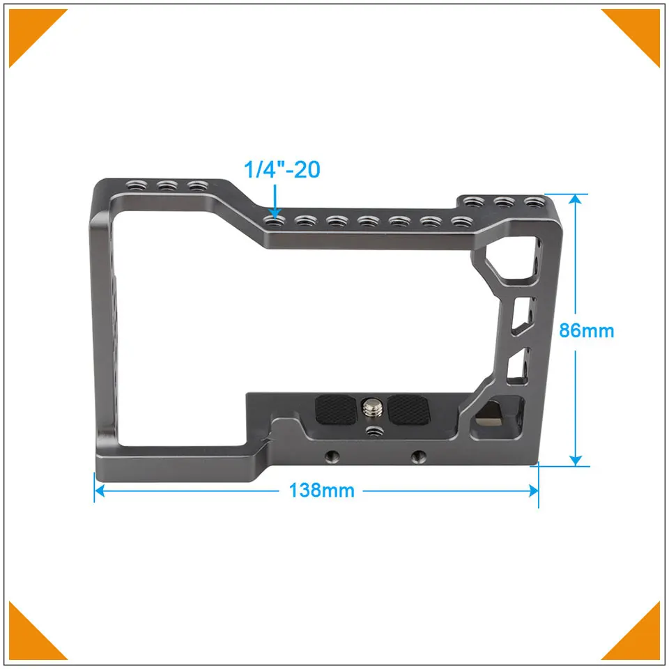 Клетка для камеры специально разработана для защиты камеры A6500, алюминиевый сплав изготовлен для веса и долговечности светильник. Он поставляется с множеством резьбовых отверстий 1/4-20, что позволяет много аксессуаров для самостоятельного крепления, таких как пластина, штатив, монопод и так далее. С винтом 1/4-20 "в нижней части камера может быть установлена и быстро удалена. С камерой в клетке, у вас все еще есть доступ к слоту для sd-карты, отсеку для батареи и всем элементам управления камерой, поэтому вам не придется тратить время на удаление камеры из клетки во время съемки.