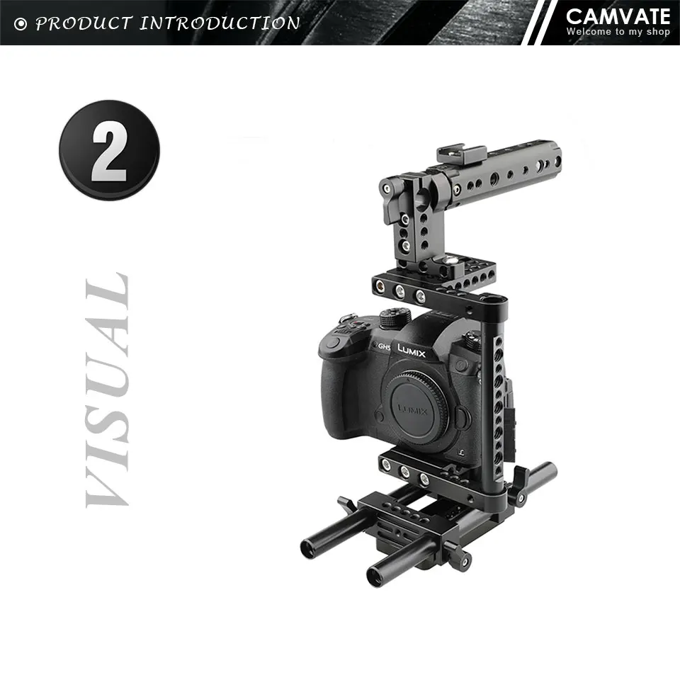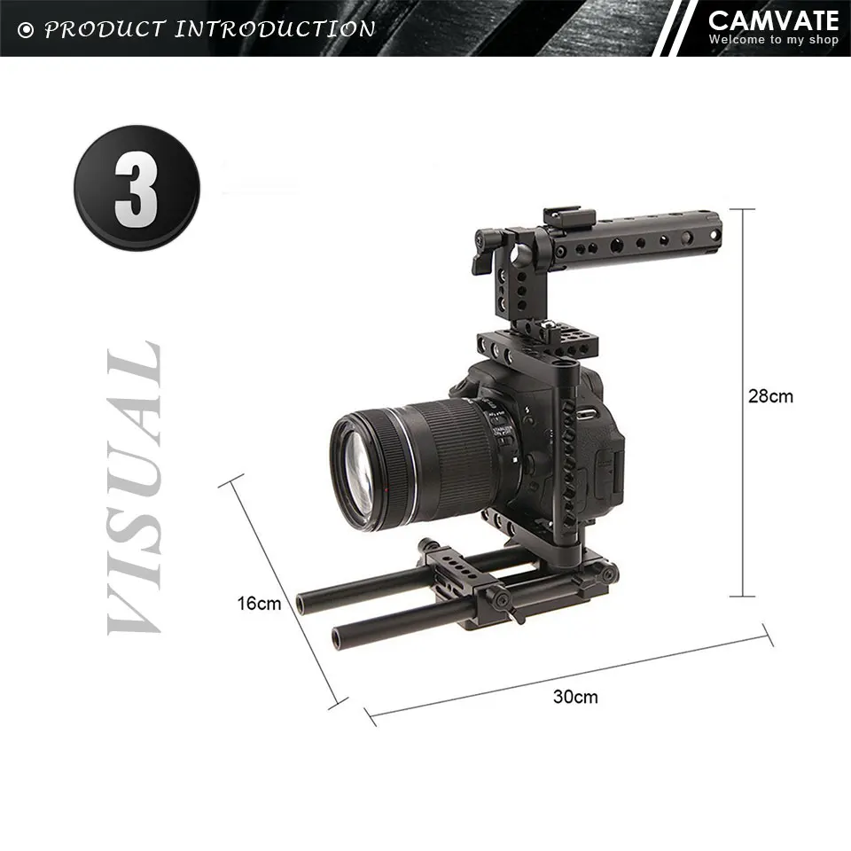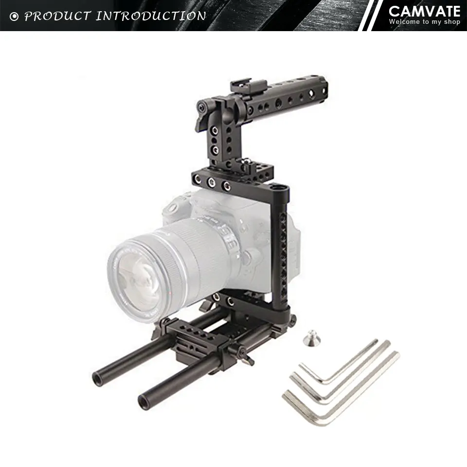 Клетка для камеры: на опорной плите камеры есть крепежный винт 1/4 ", его легко затянуть. Черная резиновая шайба защищает камеру от повреждений. Поставляется с 2 боковыми трубами разной длины для различных брендов камеры. Боковые Трубы обеспечивают множество резьбовых отверстий 1/4 "-20 и 3/8"-16.