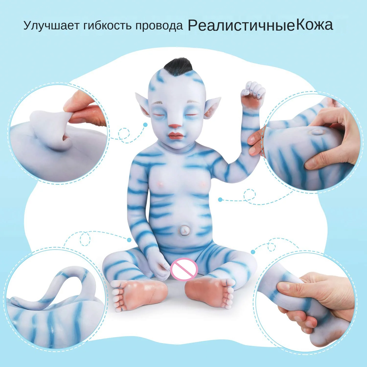 -Материал:Голова и конечности изготовлены из платинового жидкого силикона (медицинский силикон)
