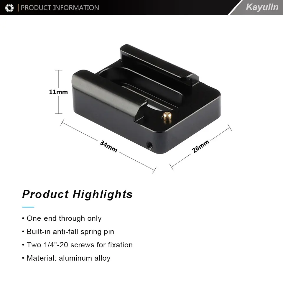 • Холодная обувь изготовлена из алюминиевого сплава, анодированная в черном цвете, подходит для светильник на камере, верхняя ручка, микрофон и многое другое.