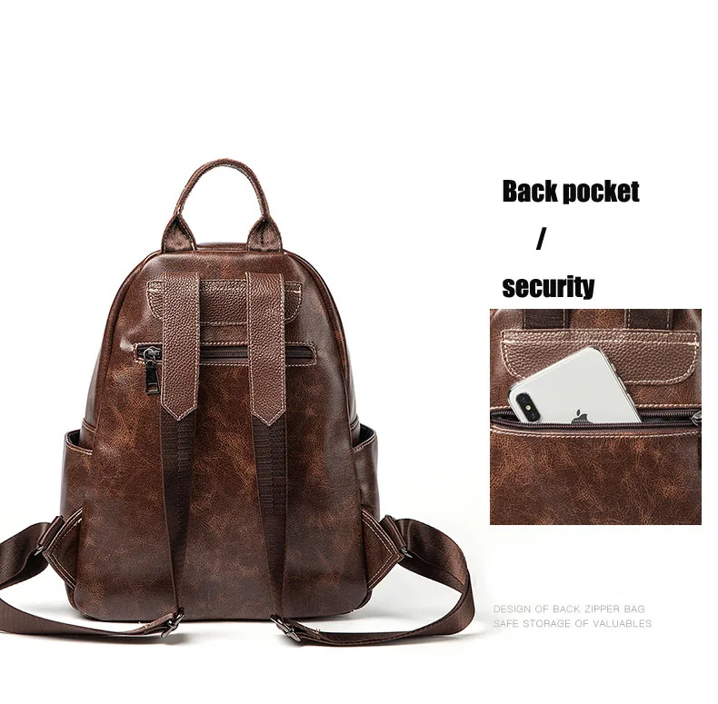 Мужской рюкзак из 100% натуральной кожи винтажный для студентов роскошная деловая