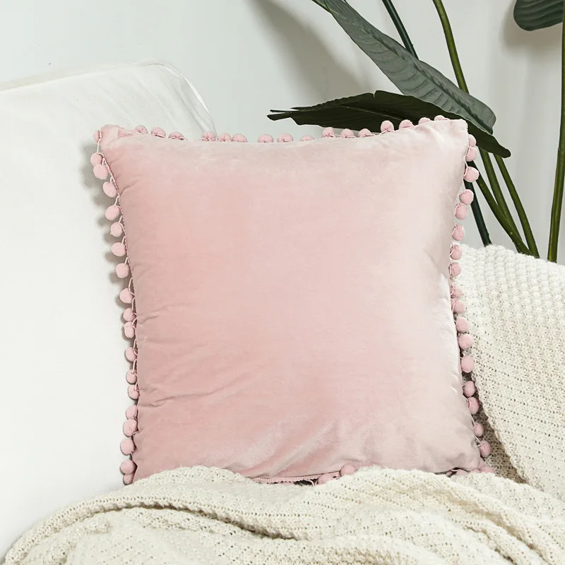 Современные белые Желтые Твердые бархатные наволочки с кисточками 45X45 для дивана
